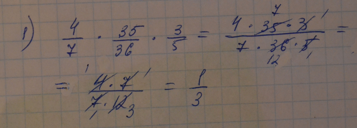 4/7*35/36=1/1*5/9 *3/5=15/45=3/9=1/3