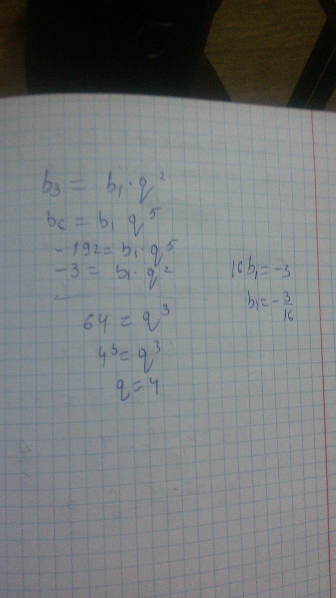дана геометрическая прогрессия (bn),в которой b3равна -3 а b6равна -192.найти первый член прогрессии