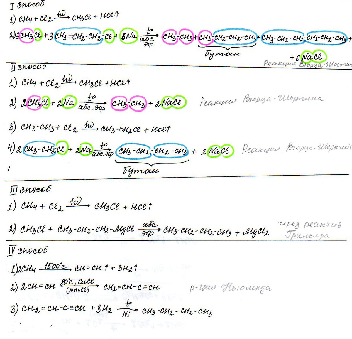 4) 2CH₃-CH₂Cl+2Na→2NaCl+CH₃-CH₂-CH₂-CH₃