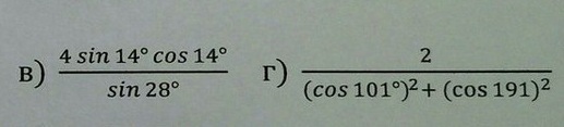 в первом фомула двойного угла 2*sin2*14/sin28 =2