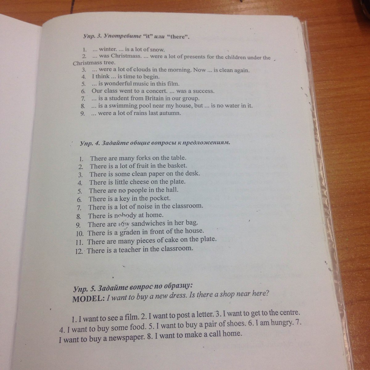 4. 1.Are there any forks on the table? 2.Is there any fruit in the basket? 3.Is there any clean paper on the desk? 4.Is there any cheese on the plate? 5.Are there any people in the hall? 6.Is there a key in the pocket? 7.Is there any noise in the classroom? 8.Is anybody at home? 9. Are the sandwiches in her bag? 10. Is there a garden in front of the house? 11. Are there any pieces of cake on the plate? 12. Is there a teacher in the classroom?