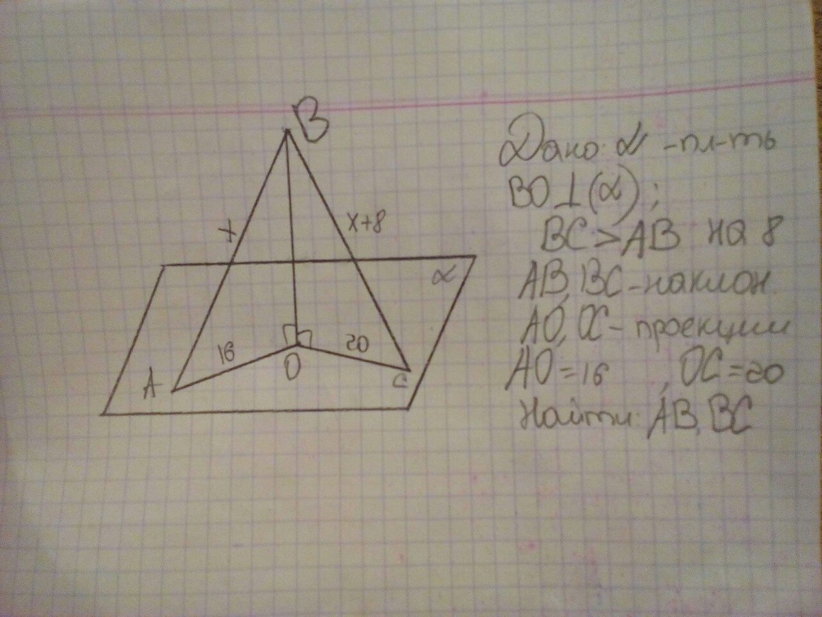 по теореме пифагора выражаем совпадающую сторону у треугольника: x^2-256=x^2+16x+64-400----->x=80/16=5