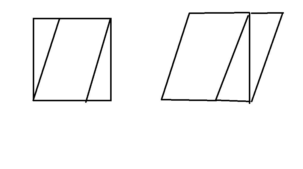 Отрезаем 2 одинаковых треугольника, как на рисунке и переставляем