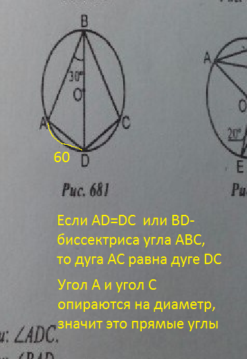 дугаADC =2*дугаAD =2*(2∠ABD) =2*(2*30°)=120°.