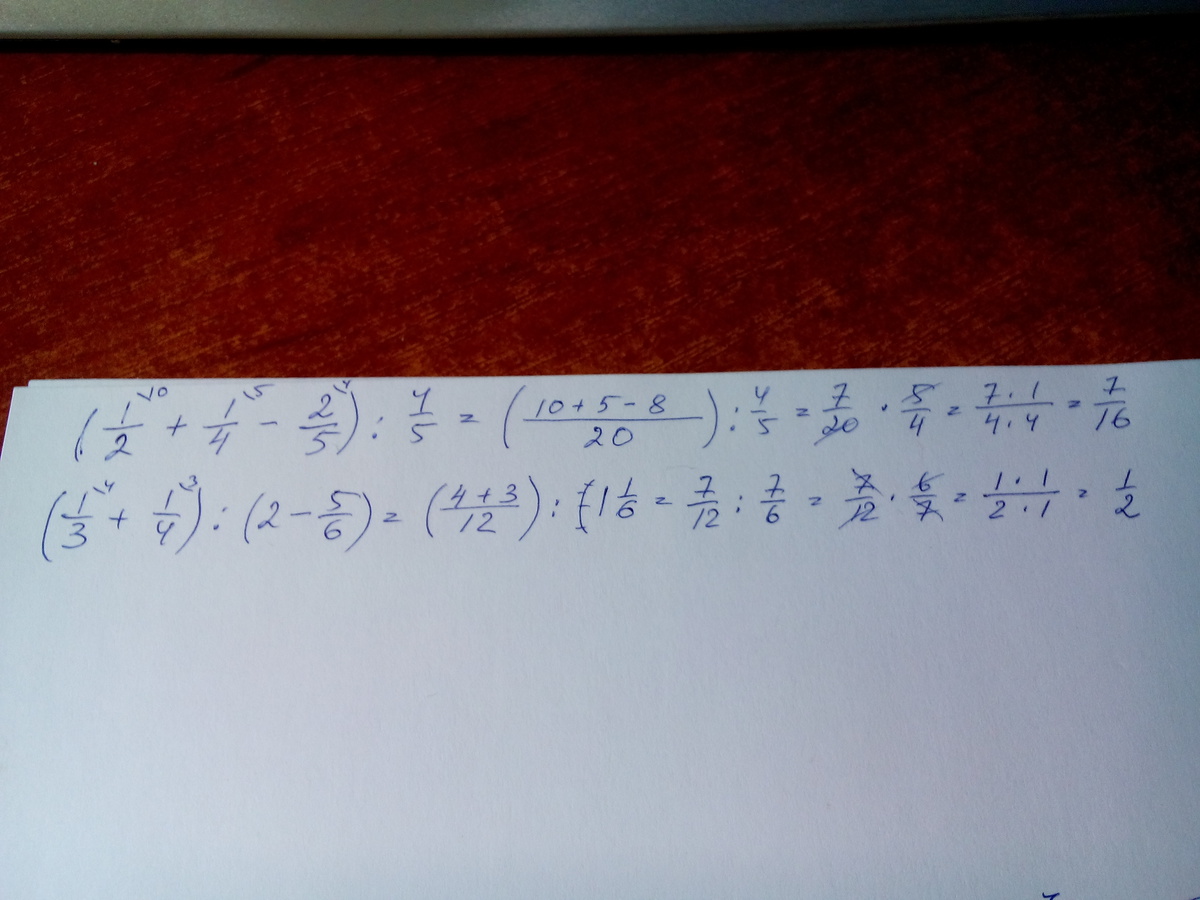 б) ( 1 дробь 2+ 1 дробь 4 - 2 дробь 5):4 дробь 5= г)( 1дробь 3 + 1 дробь 4) : ( 2 целых - 5 дробь 6=