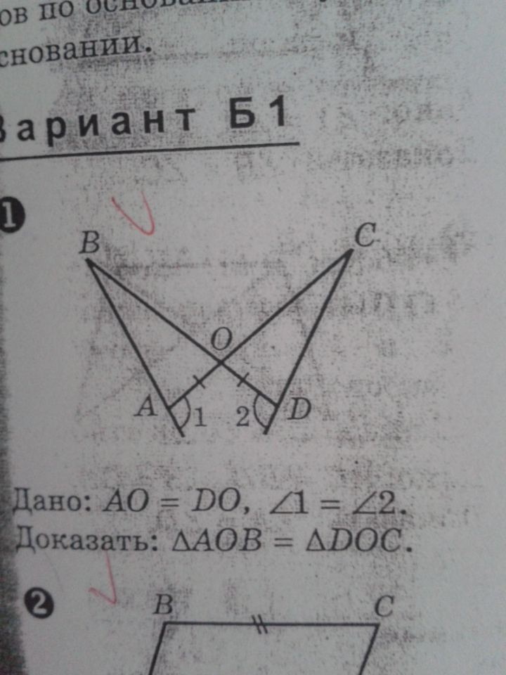 ВОА=СОD, АО=DО, Угол ВАО=Углу СDО, следовательно, треугольники рваны по второму признаку равенства треугольников