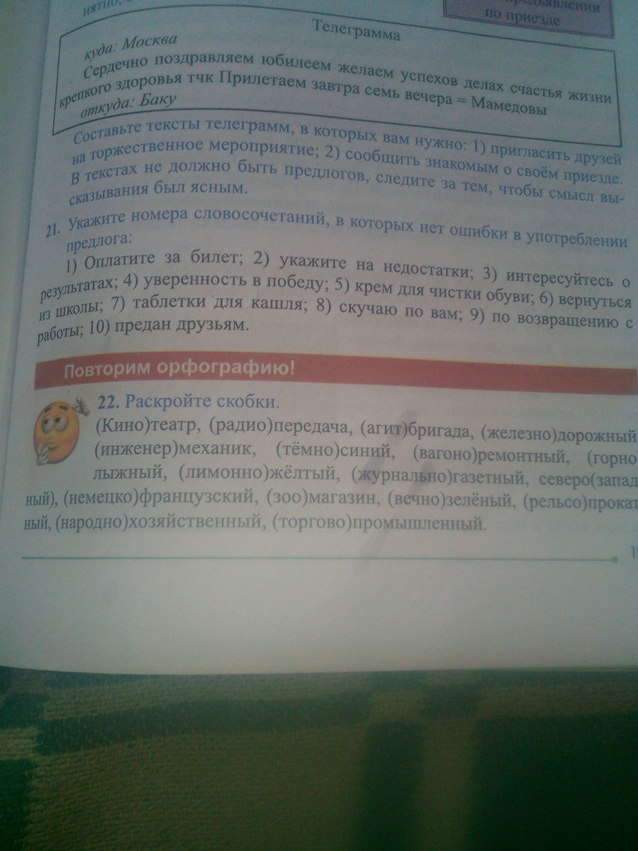 22) кинотеатр, радиопередача, агитбригада, железнодорожный, инженер-механик, темно-синий, вагоноремонтный, горнолыжный, лимонно-желтый, журнально-газетный, северо-западный, немецко-французский, зоомагазин, вечнозеленый, рельсопрокат, народно-хозяйственный, торгово-промышленный