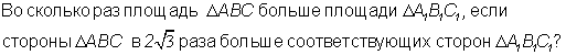 3) Отношение Площадей подобных Δ = квадрату коэффициента подобия, то есть (2√3)²=12