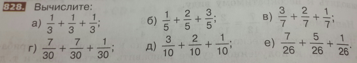 б)1(целая) 1/5. Одинаковые знаменатели,поэтому, знаменатель 5. Числители: 2+1+3=6. Неправильная дробь. Ответ; 1(целая) 1/5 1