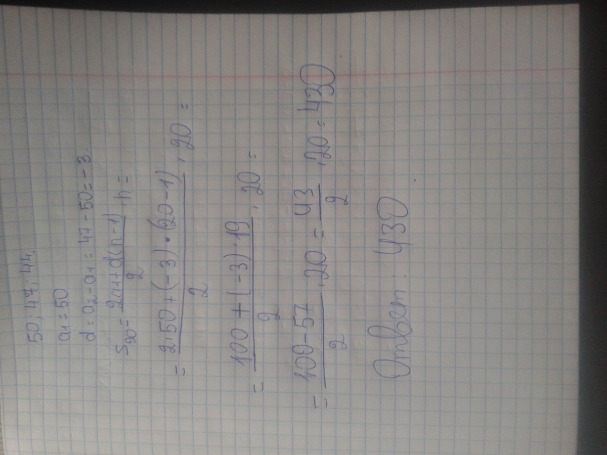 50+47+44+41+38+35+32+29+26+23+20+17+14+11+8+5+2+(-1)+(-4)+(-7)=430