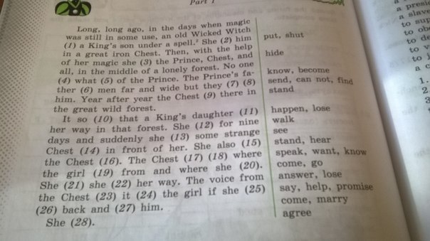 Use the verbs from the right-hand column in the necessary grammar forms to get the story complete.