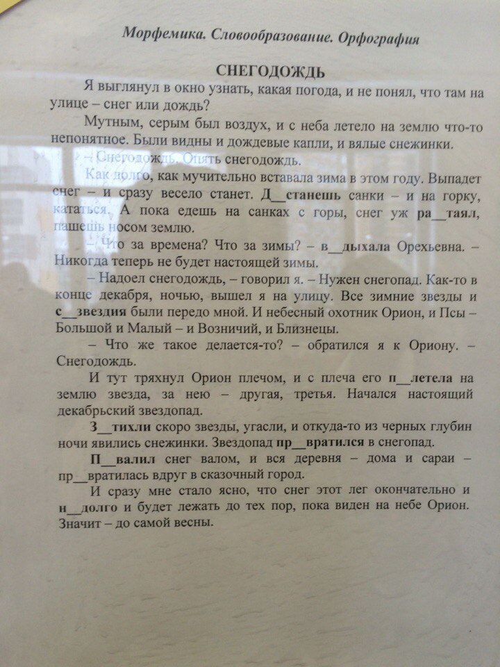 В тексте "Снегодождь" привлекают внимание эпитеты: мутный, яркий воздух; вялые снежинки, настоящий декабрьский снегопад, сказочный город. Именно они характеризуют переходный период от осени к зиме, придавая речи выразительность. Метафоры: мучительно вставала зима; затихли скоро звёзды, угасли - придают тексту образность.