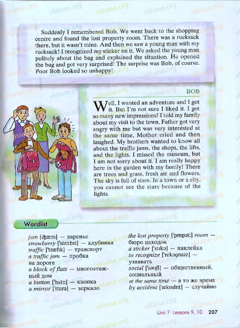 Вдруг я вспомнила про Боба. Мы вернулись в торговый центр и нашли бюро находок. Там был рюкзак,только он был не мой. Потом мы увиднли юношу с моим рюкзаком. Я узнала наклейку на рюкзаке. Мы любезно спросили о сумке и объяснили ситуацию. Он открыл сумку и очень удивился. Сюрпризом,конечно же,был Боб. Бедный Боб выглядел таким несчастным.
