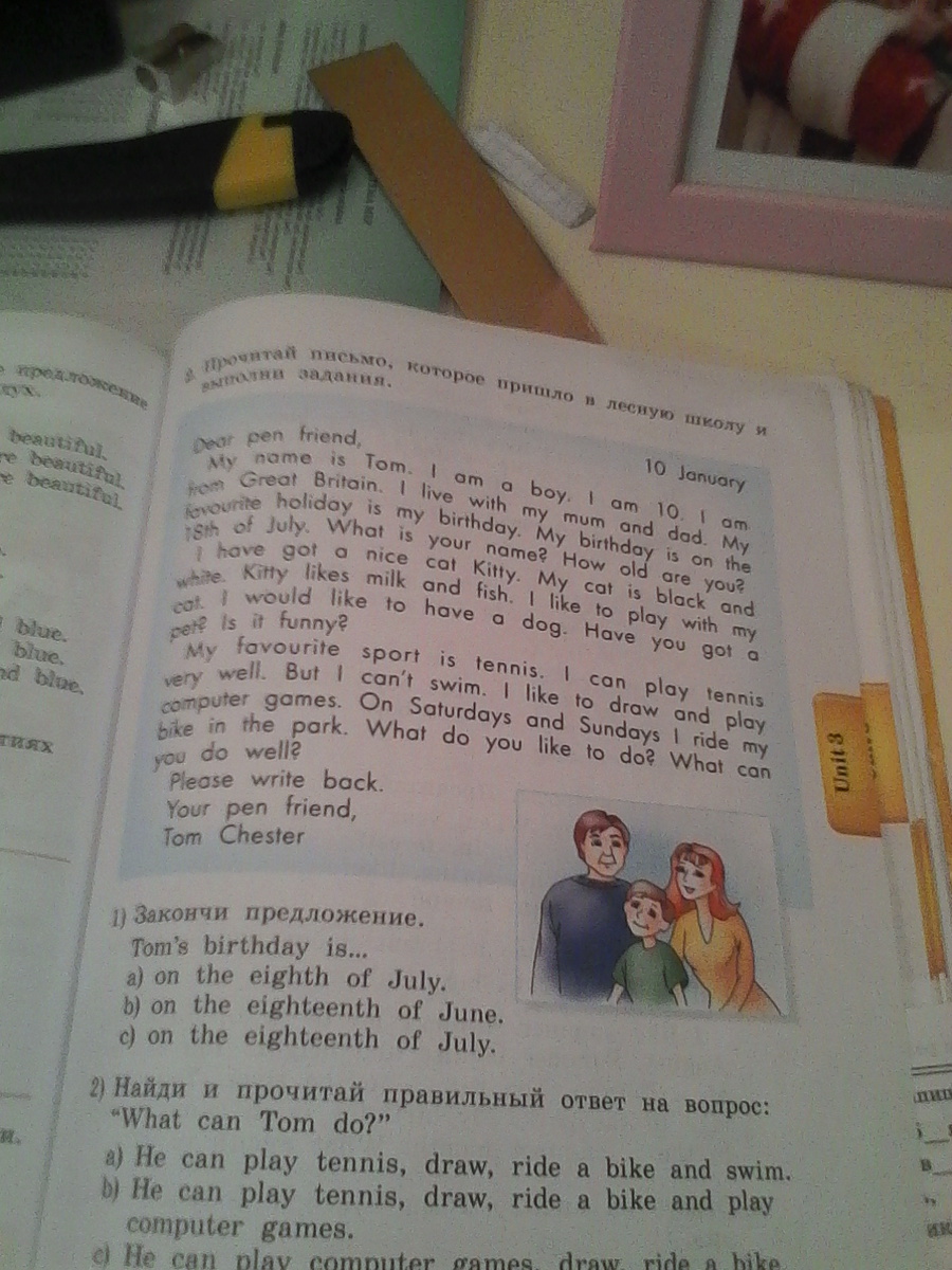 меня зовут Том.Я мальчик. Мне 10 лет. Я из Британии. Я живу с моей мамой и папой. Мой любимый праздник-мой день рождения.Мой день рождения 18 июля.Как. тебя зовут?Сколько тебе лет?