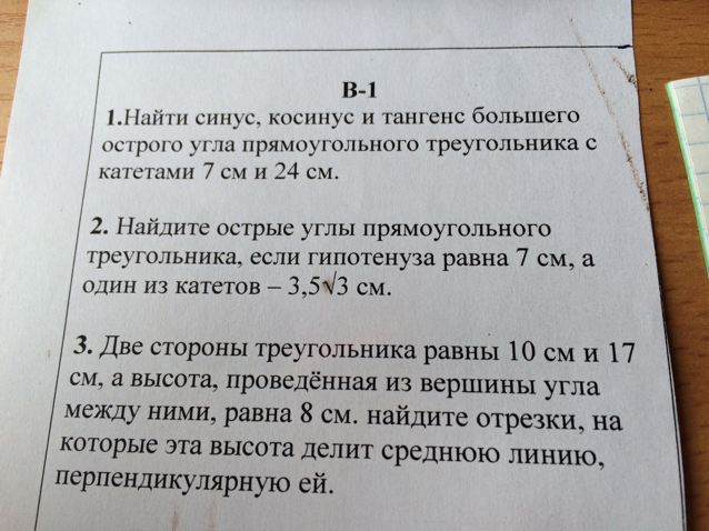 3) 3,5V3/7=V3/2 - это синус одного из острых углов. Значит угол равен 60 градусам, а второй - 30 градусам.