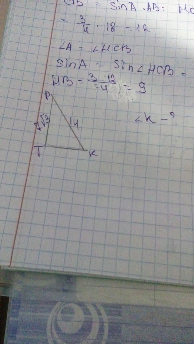 SinK = 7sqr/14=0.866