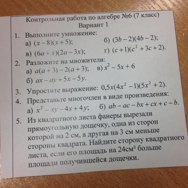5) Пусть x- сторона квадрата, тогда стороны дощечки (x-2) и (x-3)