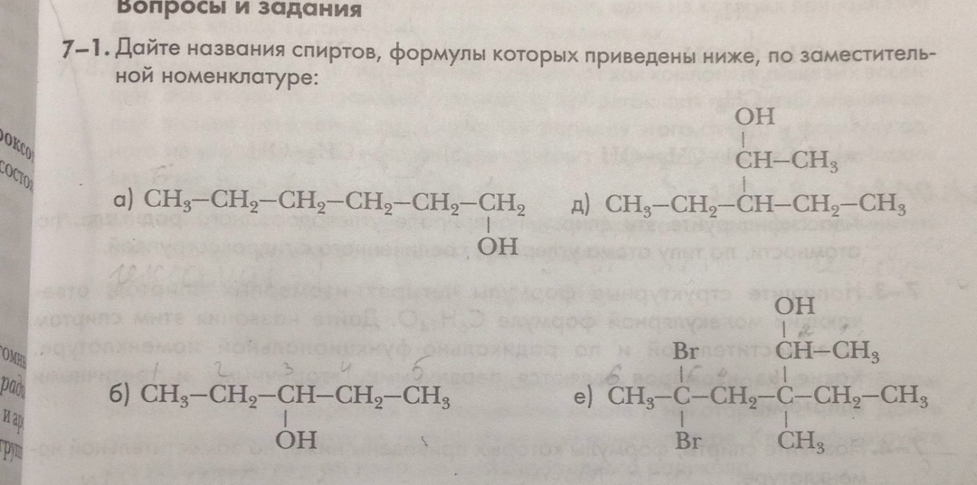 Дайте названия спиртов, формулы которых приведены ниже, по заместительной номенклатуре :