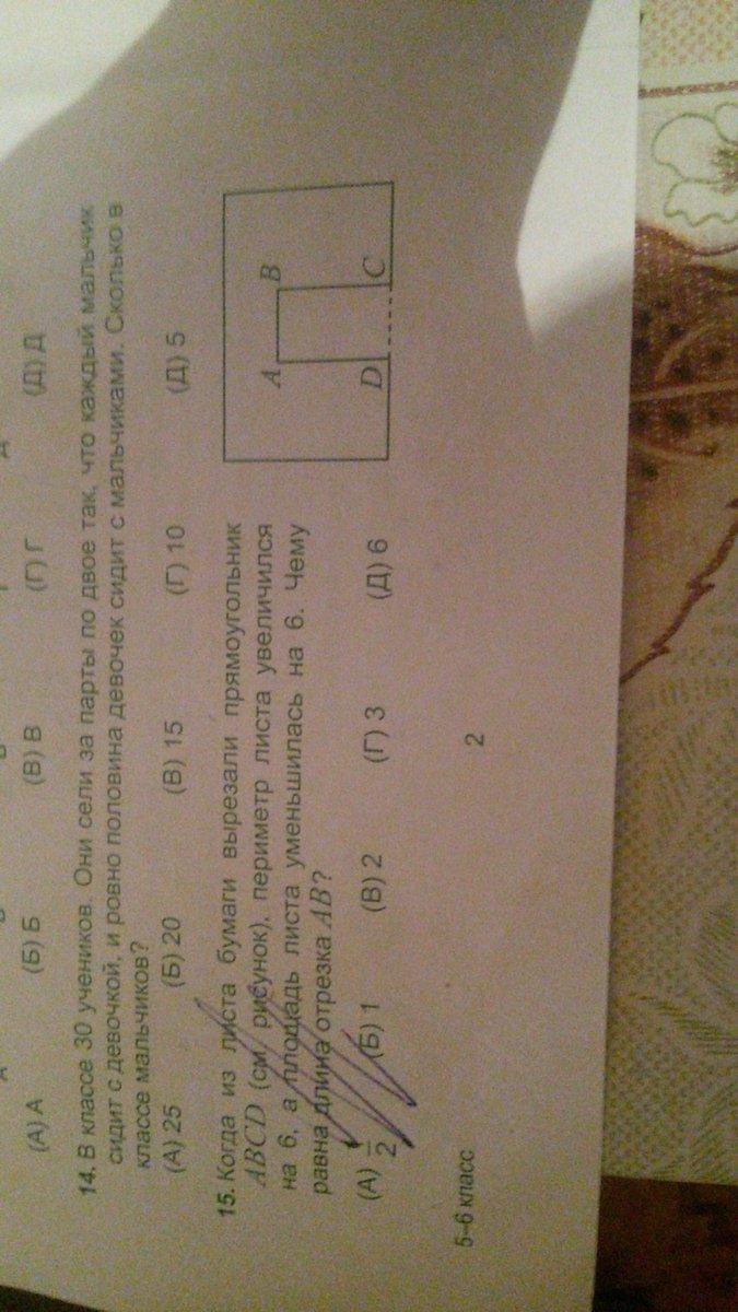30 учеников. 15 девочек, столько же мальчиков Ответ В) 15
