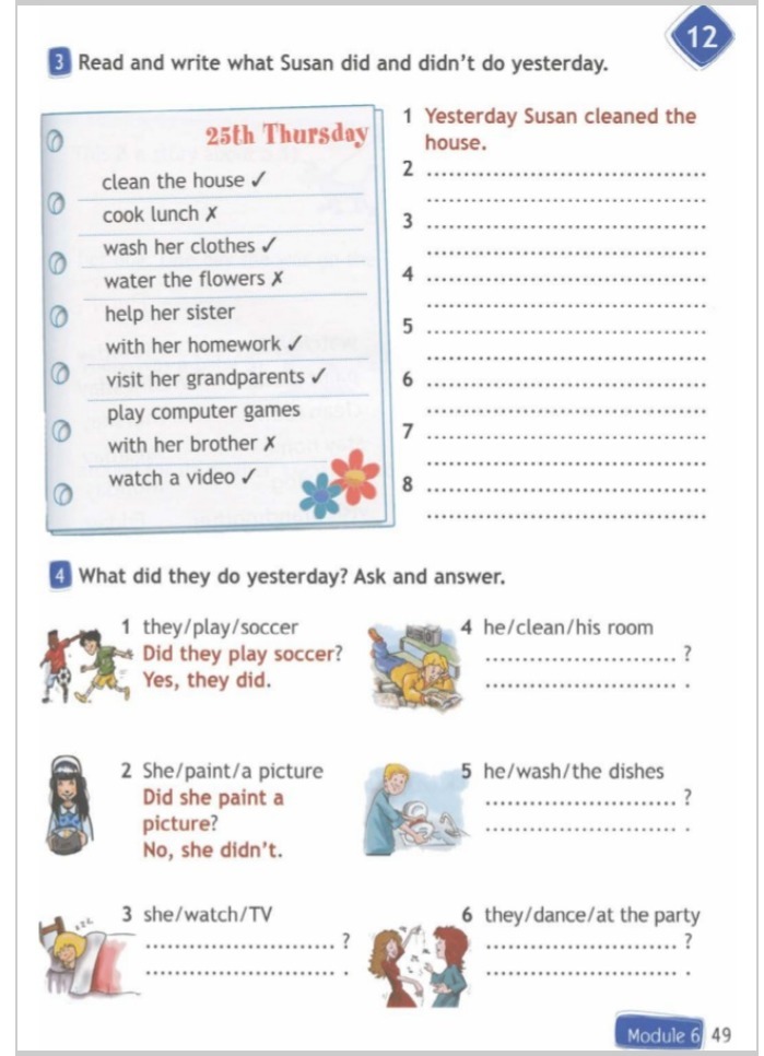 4.Did he clean his room? - No, he didn't.