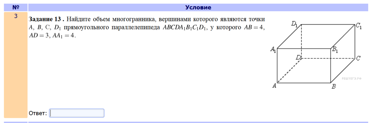 Объем по формуле