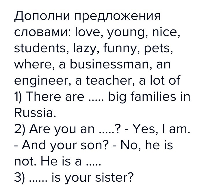 love , young, students , lazy , funny , pets , where , a businessman ,an engineer, a teacher, a lot of.