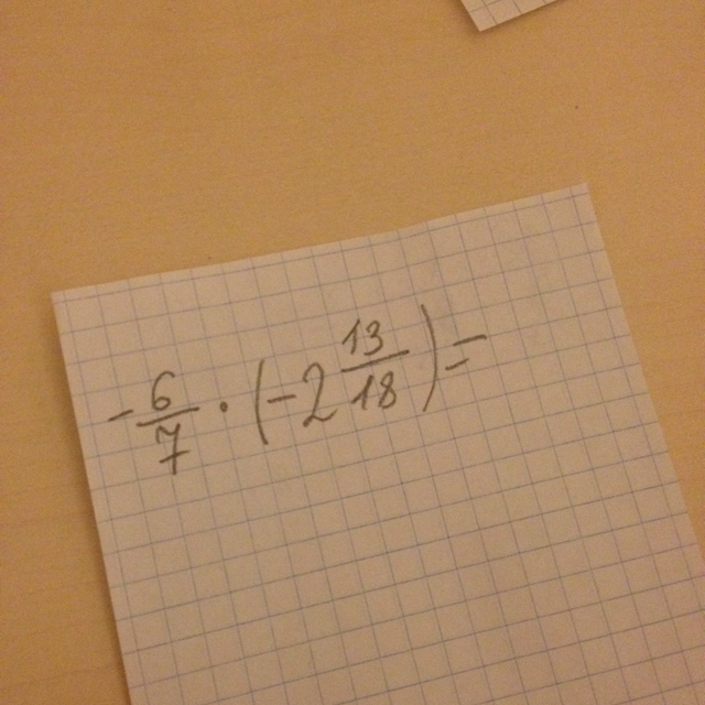 -6/7 * (- 2*18+13/18) => -6/7 * (-49/18) => -6 *(-49)/7*18 => 294/126 =>2целые 42/126 => 2 целые 1/3