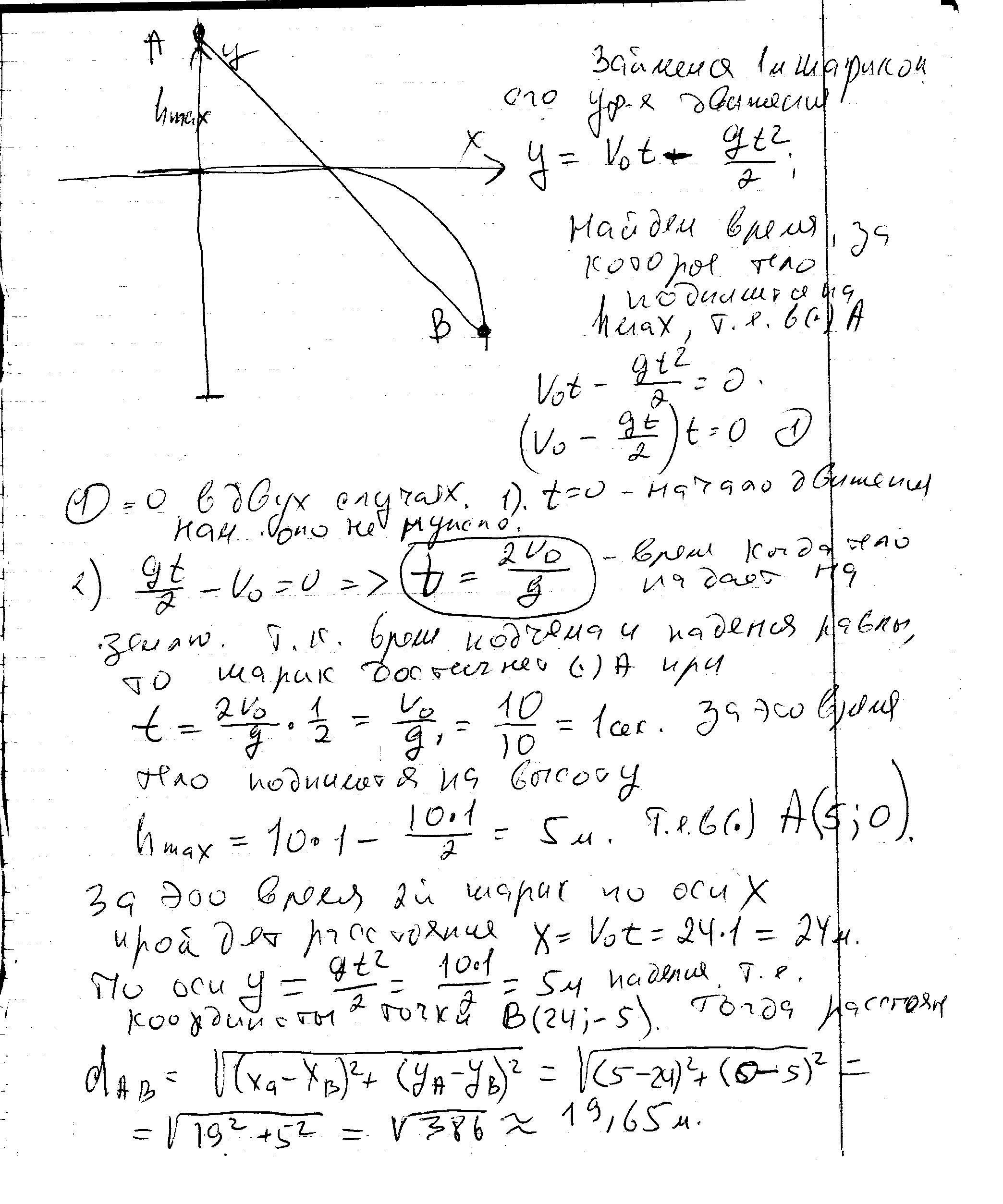 Из точки, находящейся над землёй, одновременно бросили два шарика: один – вертикально вверх с начальной скоростью V=10 м/с, второй – горизонтально с