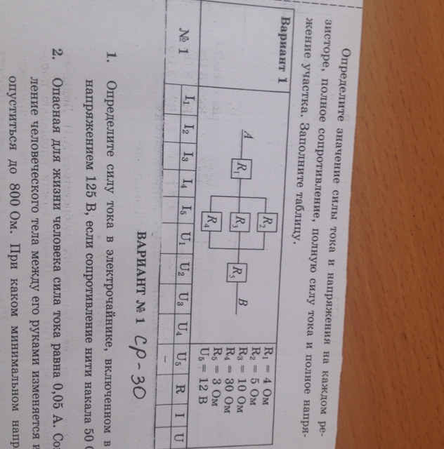 Пожалуйста, помогите, надо сдать 16 Марта самую верхнюю задачу с чертежом... Определить значение силы тока и напряжения на каждом резисторе,полное сопротивление,полную силу тока и полное напряжение участка.Заполнить таблицу .
