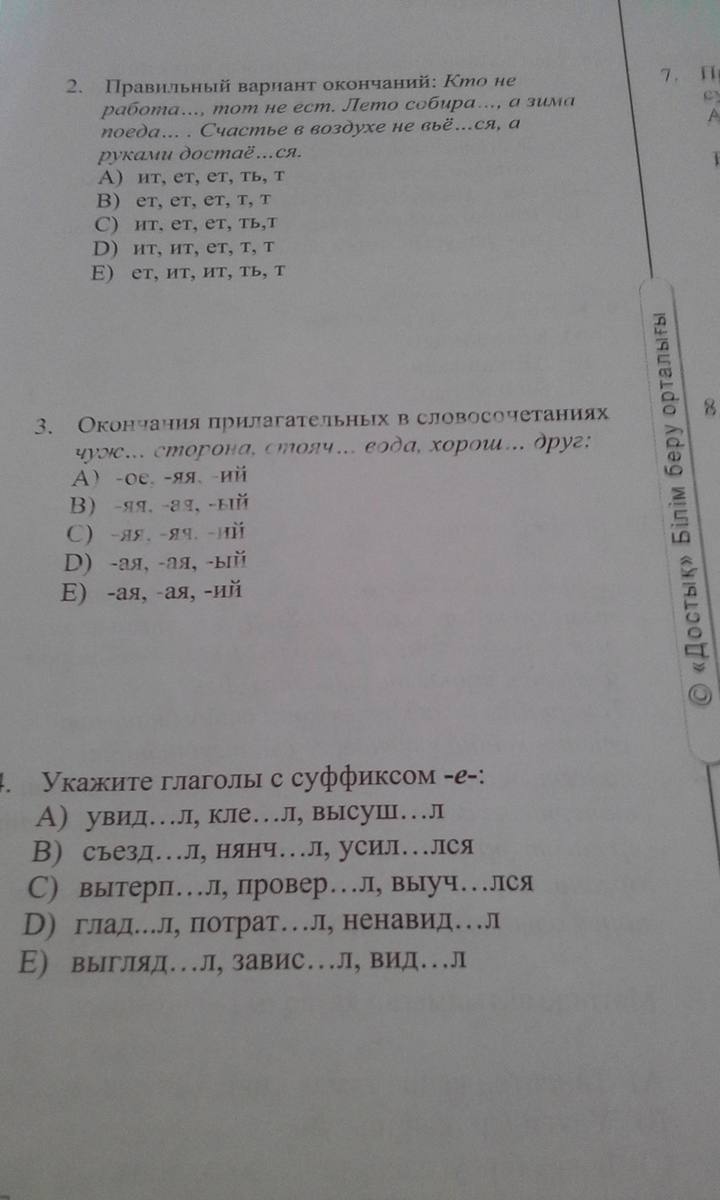 1Е 2В 3Е 4 Е 5 НЕ ВИДНО 6 В 7 А 8А 9А 10Е