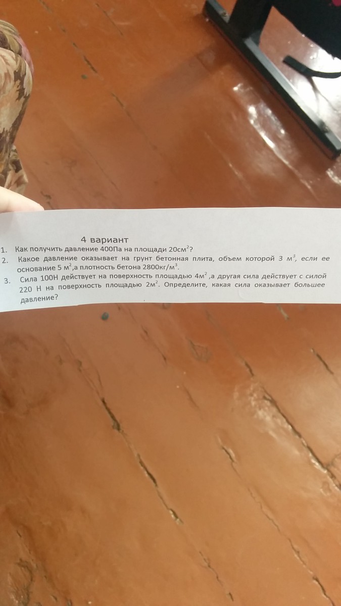 Да там и делать нечего. Давление равно силе, делённой на площадь. P=F/S
