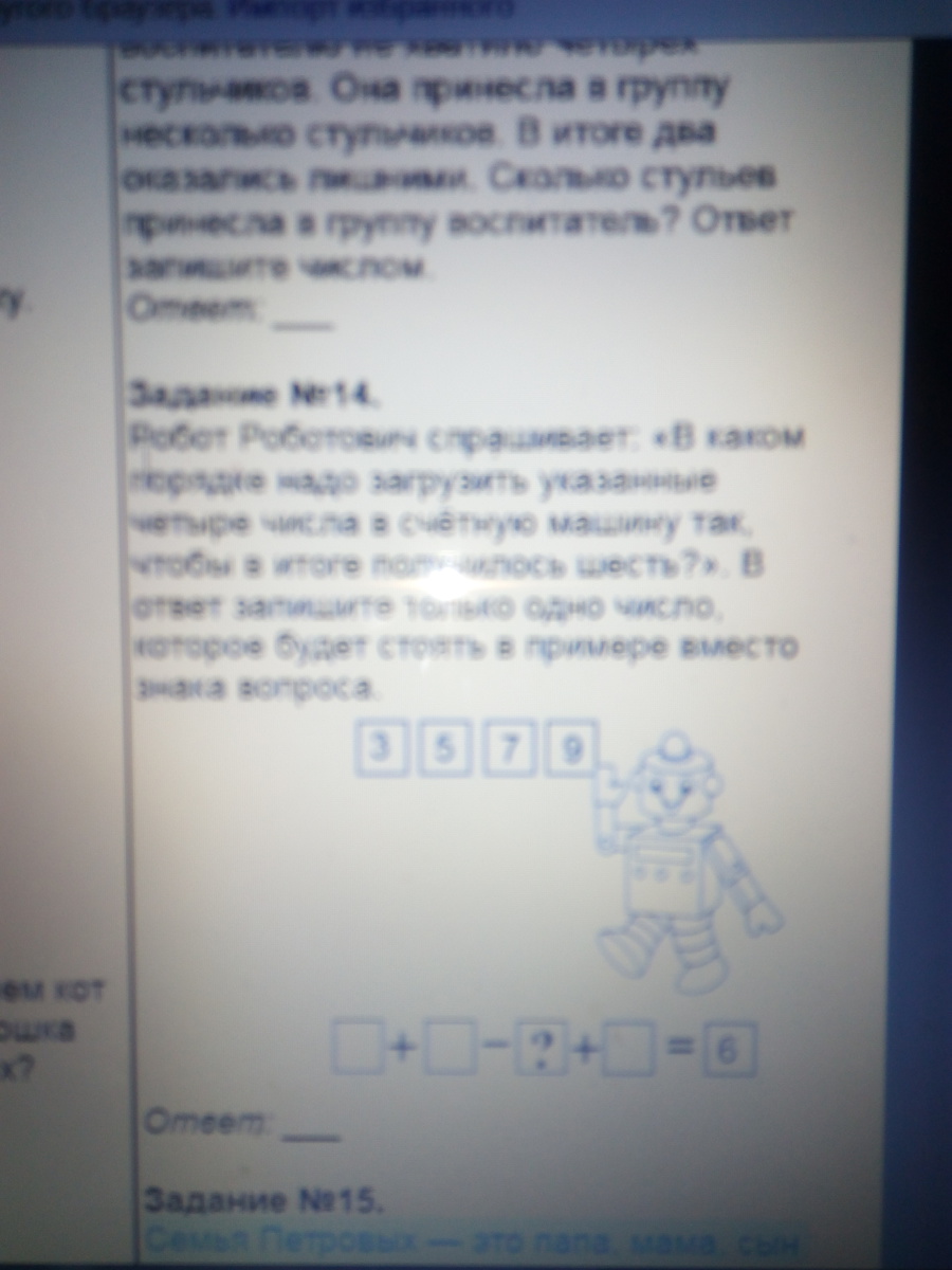 5+7-9+3=6 плохо видно текст, но судя по схеме такое решение