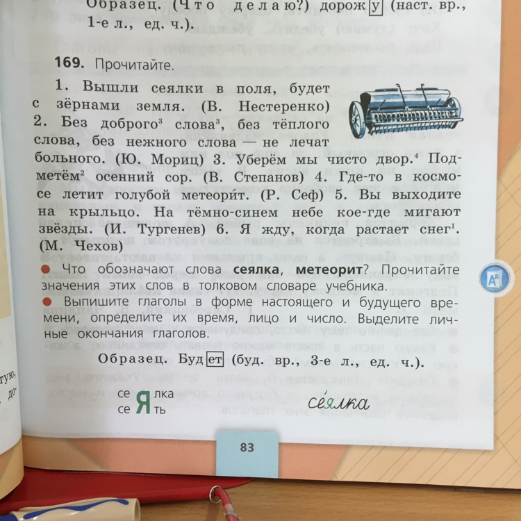 Упр.169. Выпишите только глаголы которые только 1,2 спряжения , настоящего или будущего времени , 1,2,3-го лица и единственного или множественного числа. Кророче под упражнением написан образец.Плиз срочно!!!!!!!!!!!!Если можно пожалуйста прям сейчас!!!!!!!!!!!