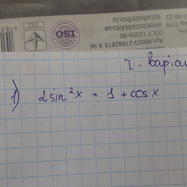 2sin^2x=1+cosx