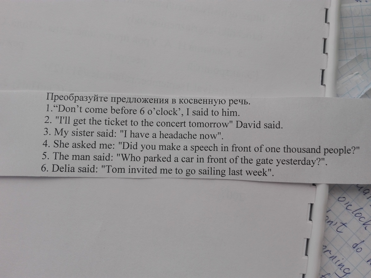 6.Delia said that Tom had invited her to go sailing the previous week.