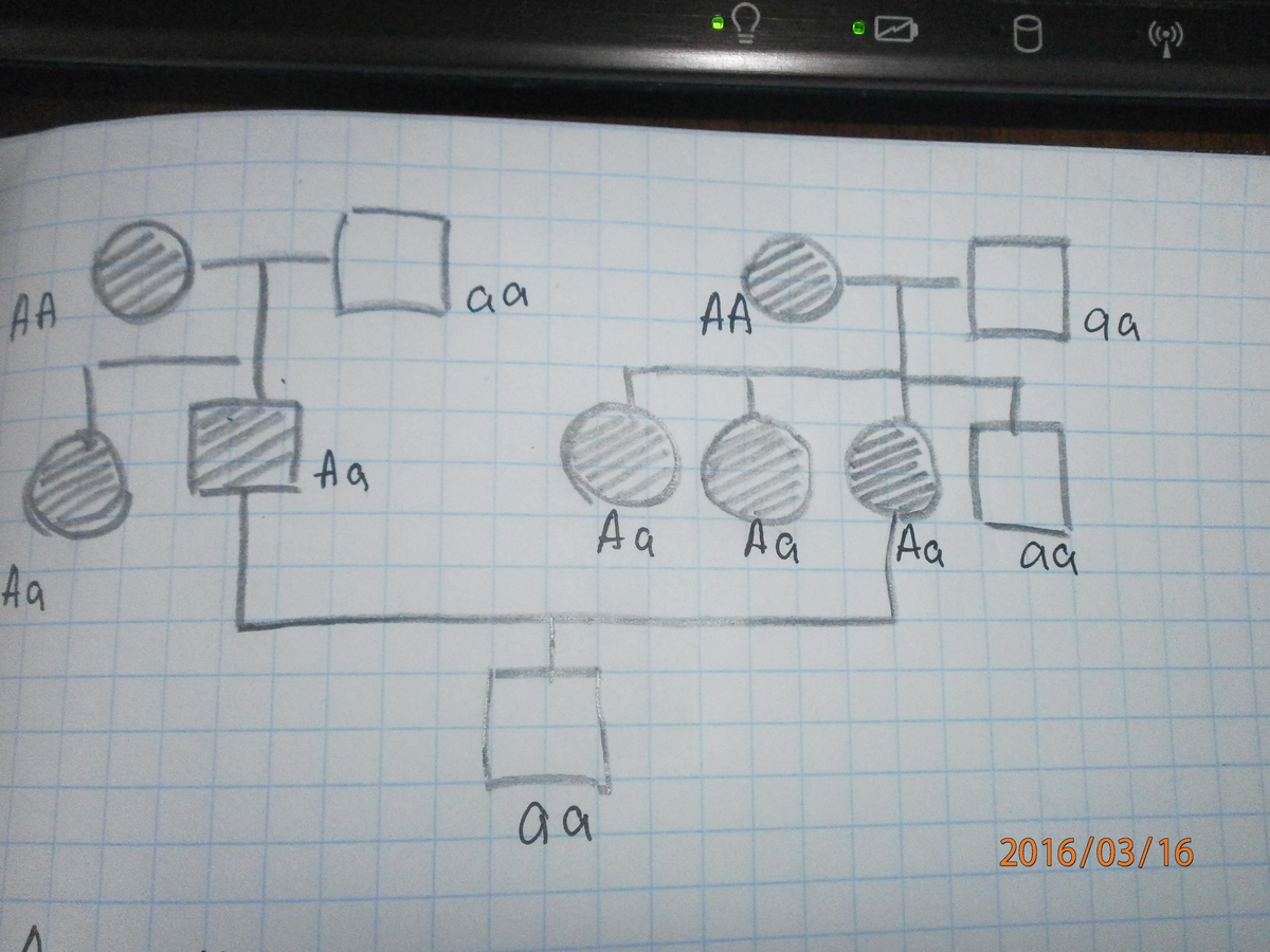 Второй закон Менделя. При скрещивании двух гетерозиготных (Аа) наюлюдается расщипление по генотипу 1:2:1. То есть потомство будет АА, Аа, Аа, аа