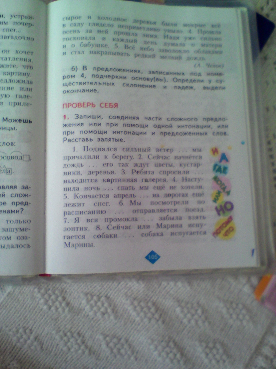 Запиши соединяя части сложного предложения или при помощи одной интонации или при помощи интонации и предложенных слов