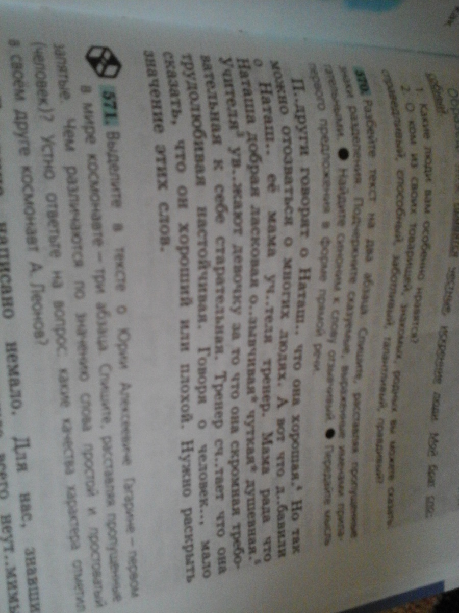 Мама рада, что Наташа добрая, ласковая, отзывчивая, чуткая душевная.Учителя уважают девочку за то, что она скромная, требовательная к себе, старательная.Тренер считает, что она трудолюбивая, настойчивая.Говоря о человеке, можно сказать, что он хороший или плохой.Нужно раскрыть значение этих слов.