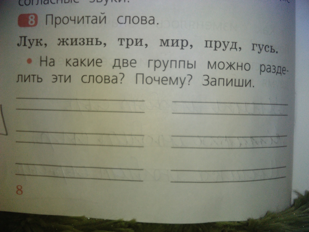 Слова в одной группе могут являться омонимами: лук-луг, три(числительное)-три(глагол), пруд-прут. В другой группе слова не могут являться омонимами (жизнь, мир, гусь).