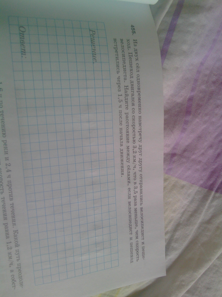 или 3,2 * 5 = 16(км/ч) - скорость велосипедиста 16 + 3,2 = 19,2(км/ч) - скорость их сближения 19,2 * 1,5 = 28,8(км)