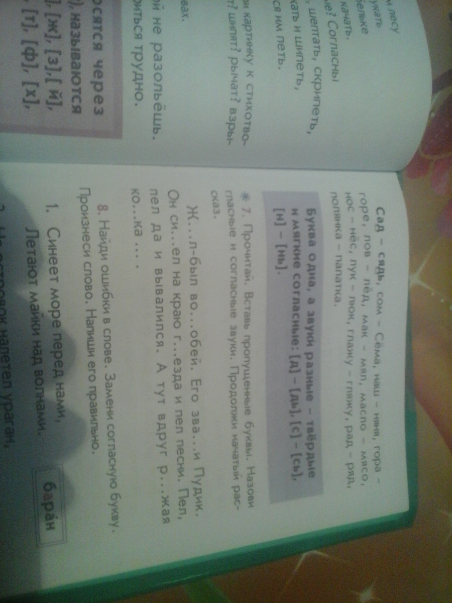 прочитай вставь пропущенные буквы Назовите гласные и согласные звуки продолжить начатый рассказ ......Жил был Воробей его звали Пудик. он сидел на краю гнезда и пел песни пел ,пел да и вывалился а тут вдруг рыжая кошка