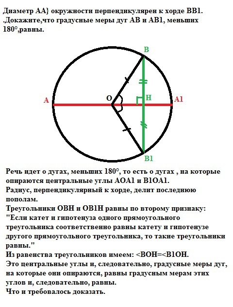 1) "Если диаметр перпендикулярен хорде, то он делит ее пополам". Значит хорды ВА1 и В1А1 равны.