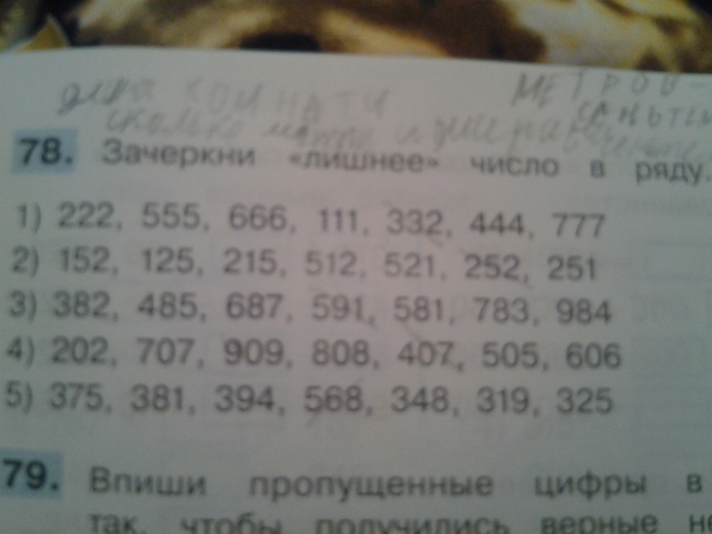 2) 152, 125, 215, 512, 521, 252, 251 - лишнее (252), т.к. все остальные состоят из трех цифр: 1, 2, 5;