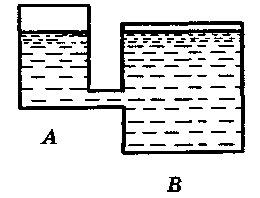 На рисунке (справа) сосуд А до верхней кромки налить не удастся, т.к. вода по закону сообщающихся сосудов будет выливаться в соседний сосуд и оттуда выливаться через край.