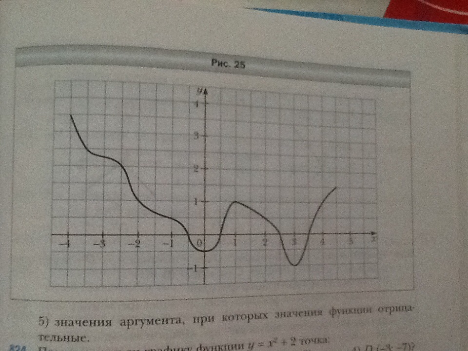 На рисунке изображен график функции y=f(x).пользуясь графиком найдите 1) f(-4),f(-2,5),f(0,5),f(2). 2). Значения x, при которых f(x)=2,5; f(x)=1; f(x)=0. 3) область определения о область значений функций ; 4) значения аргумента, при которых значения функции положительные ; 5) значения аргумента , при которых значения функции отрицательные