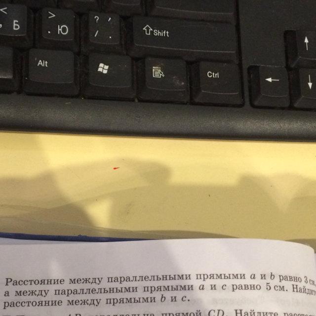 В зависимости от расположения прямых либо 2 см либо 8 см