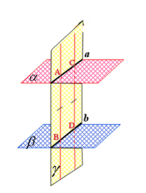 Доказательство свойства отрезков параллельных прямых, заключенных между параллельными плоскостями). Отрезки параллельных прямых, заключенные между параллельными плоскостями, равны.