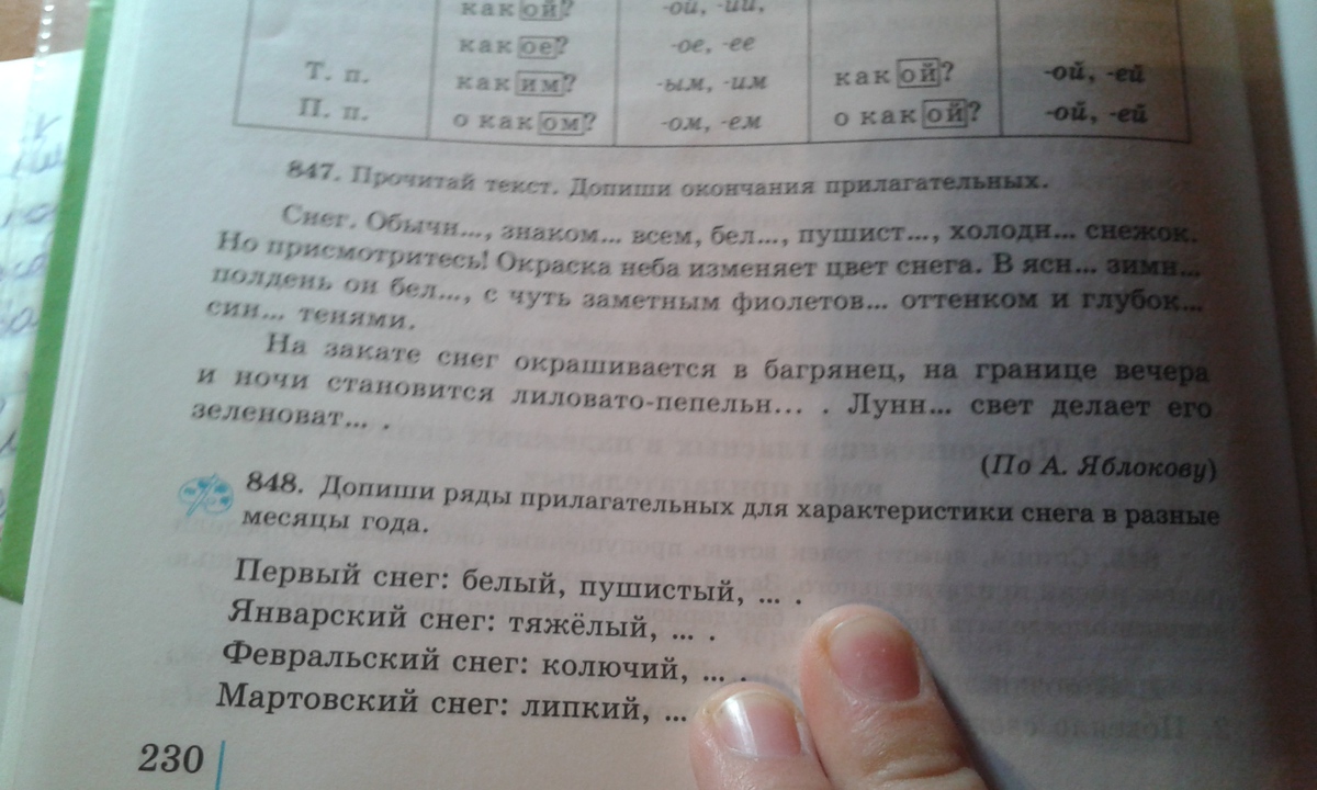 ОбычнЫЙ, знакомЫЙ, белЫЙ, пушистЫЙ, в яснЫЙ, зимнИЙ, белЫЙ, фиолетовЫМ, глубокИМИ, синИМИ, лиловато-пепельнЫМ, луннЫЙ, зеленоватЫМ.