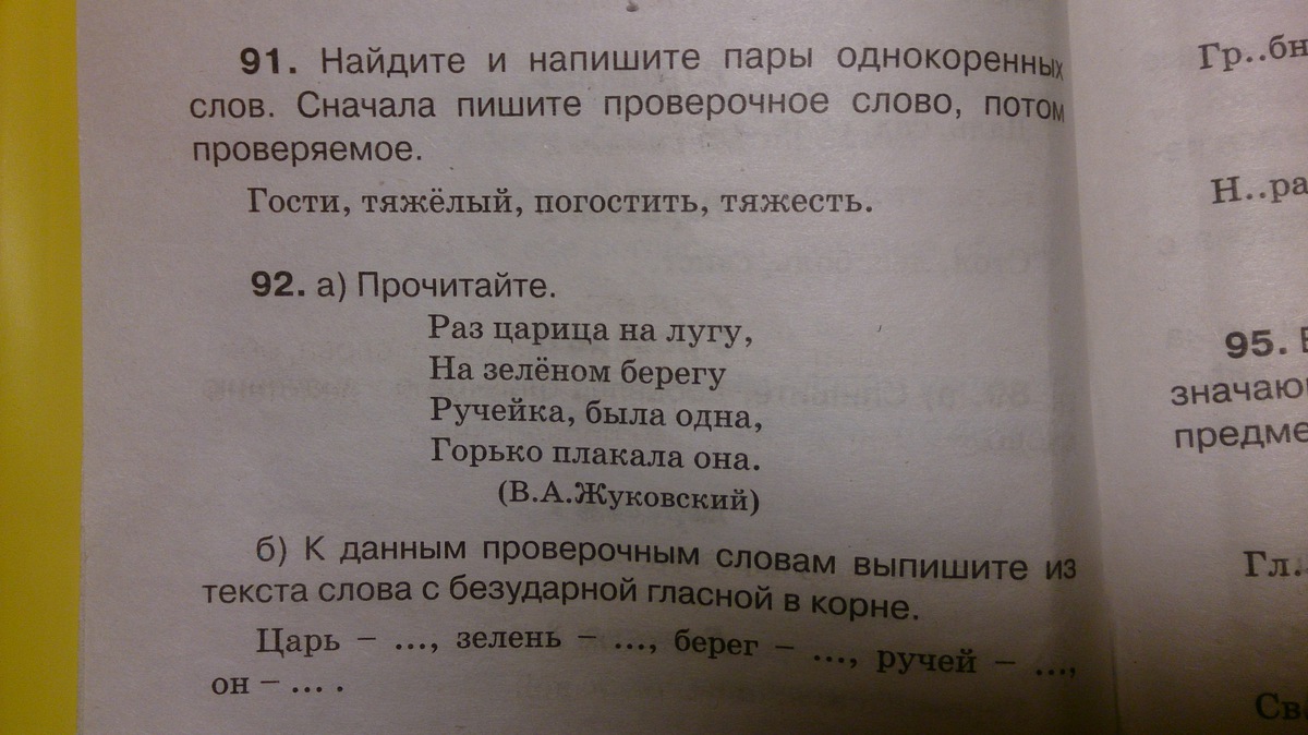92. Царь- царица, зелень- зеленом, берег - берегу, ручей- ручейка, он- она.