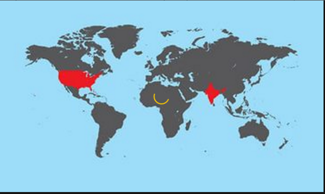 Не покозать Сша и Индию , а сказать какая площадь у выше перечисленных
